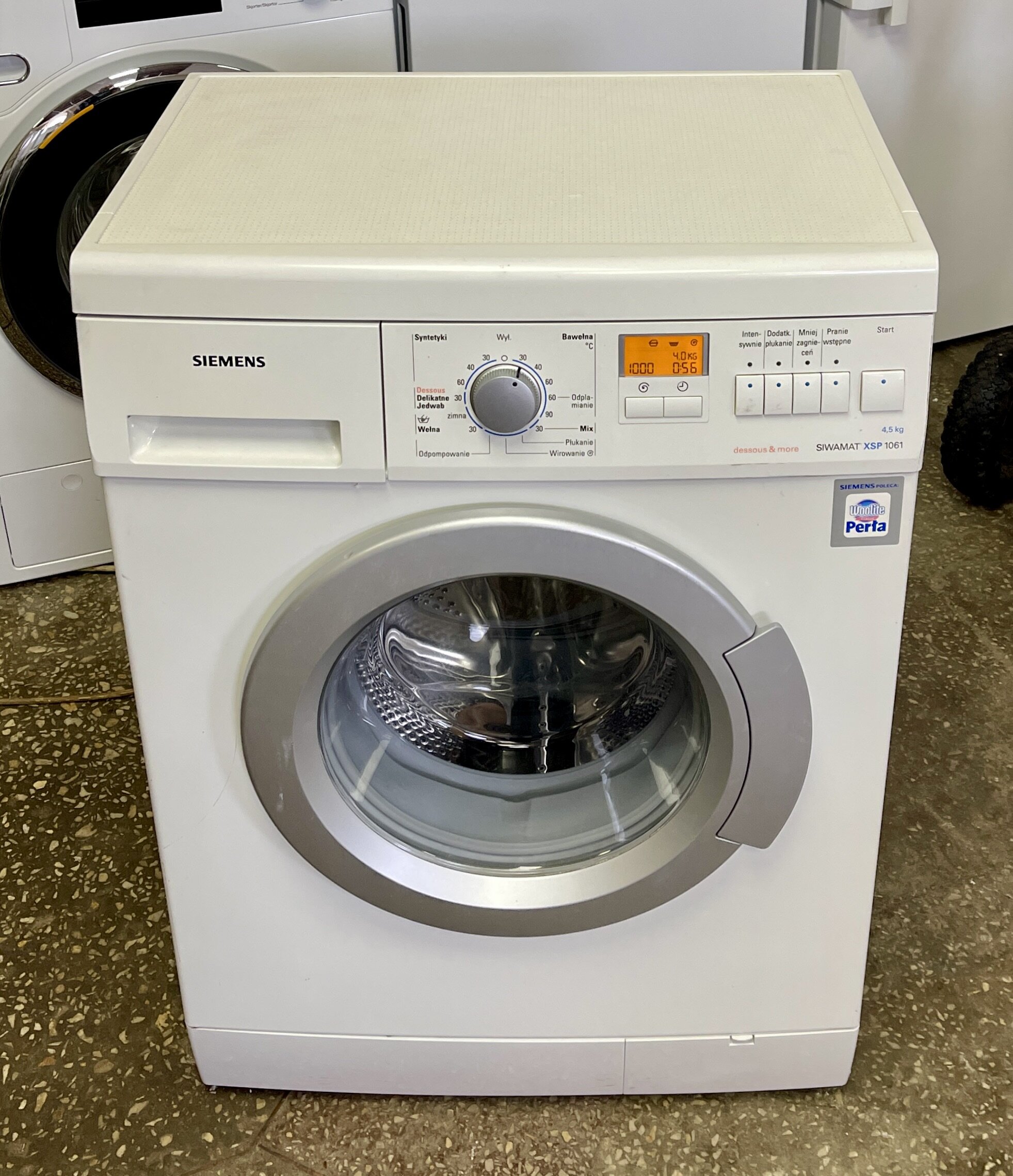 Фронтальна пральна машина, вузька, базова модель з віджимом 1000 об/хв. Виробництво — Німеччина.